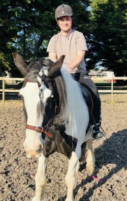 Away from work, Frankie enjoys spending time outdoors, often going for long walks in nature to unwind. Frankie also loves animals and is happiest when horse riding, pictured with Megan the horse!